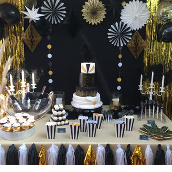 - Décoration de votre table en adéquation avec le thême que vous avez choisi ( accessoires, supports, affiche... ).